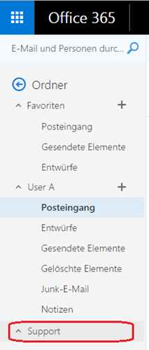 - Im linken Navigationsbereich wird nun das gewünschte freigegebene Postfach angezeigt. Sie können es wie ein normales Postfach verwenden.