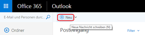 - Klicken Sie oben in der Menuleiste auf NEU um eine Neue E-Mail zu erstellen.