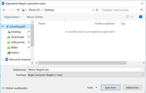 Wählen Sie den Speicherort und geben Sie den Regeln einen Namen: